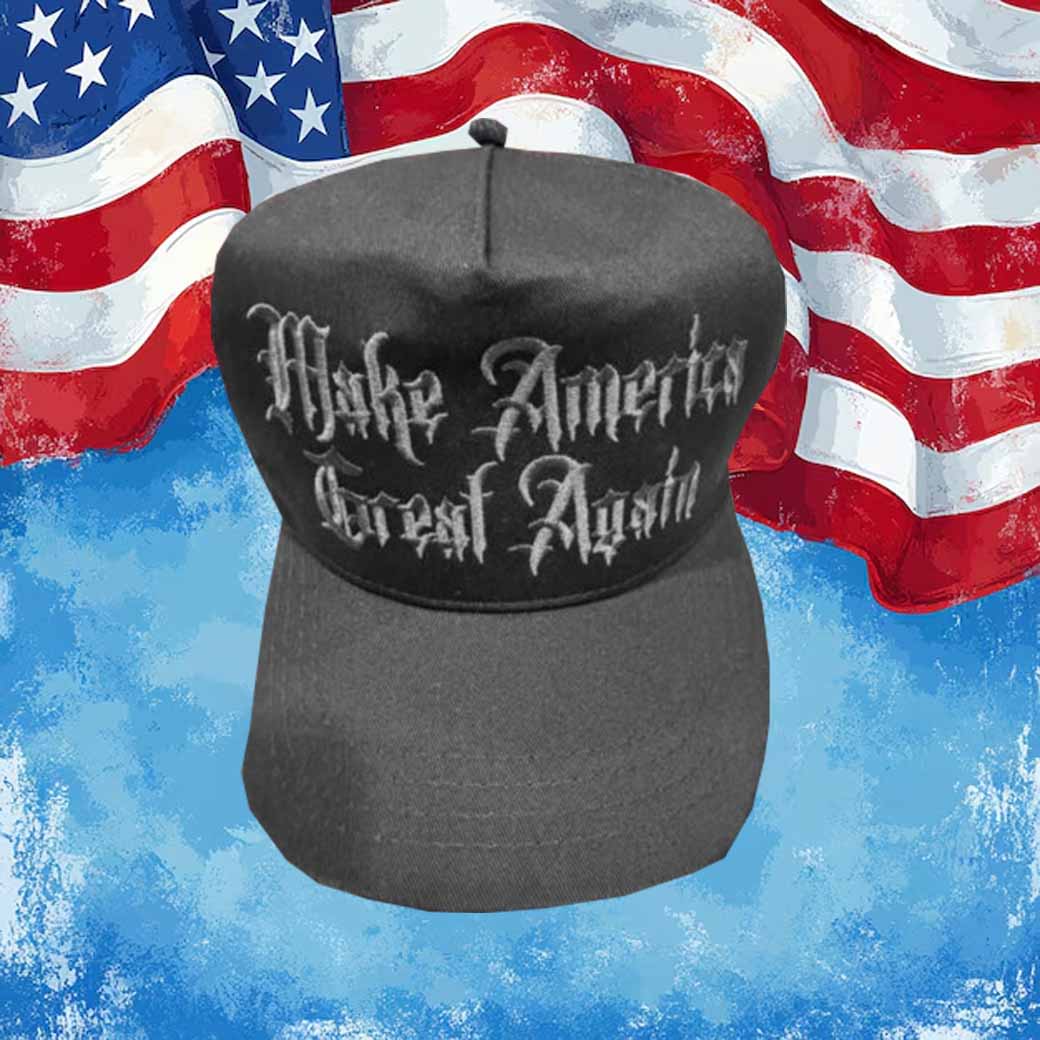 Embroidered Gothic Lettering: The iconic “Make America Great Again” slogan is meticulously embroidered in a striking Gothic font, creating a bold and eye-catching statement.