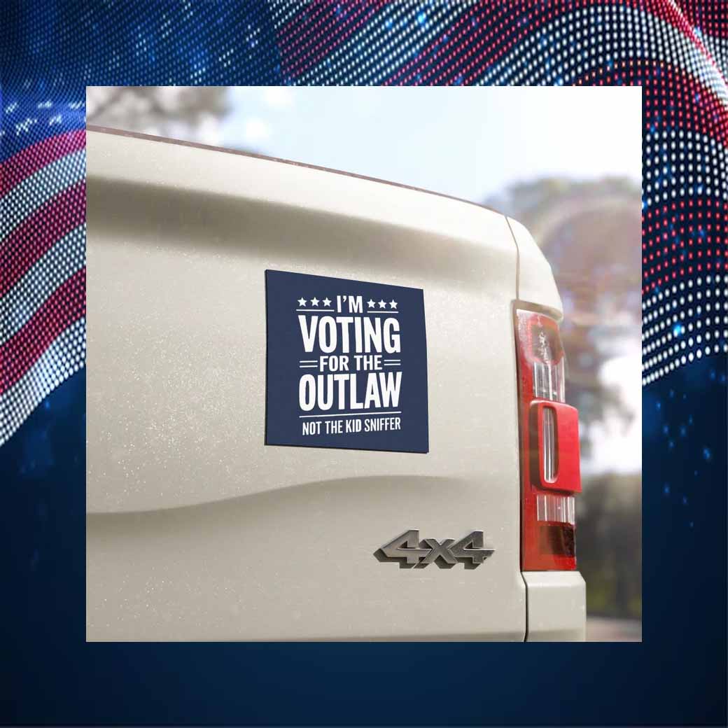Don’t let the establishment silence your voice. Order your “I’m Voting For The Outlaw Not The Kid Sniffer” car magnet today and show the world that you’re not afraid to stand up for what you believe in.